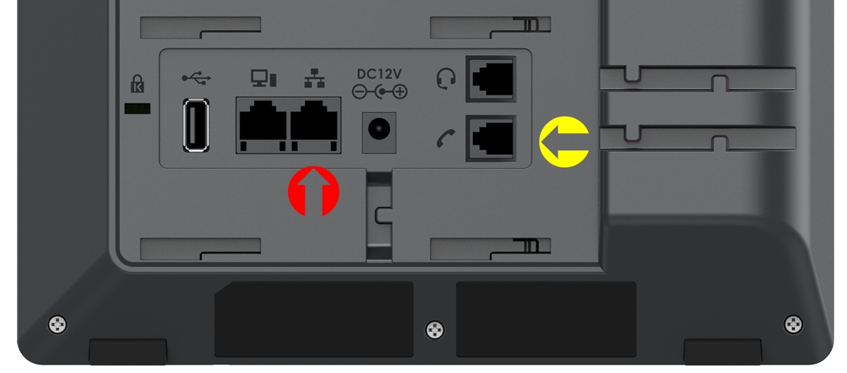 See Red Icon below for location. Some phones may have a slightly different layout on the back panel. The NETWORK ICON will show on some phones as well, which is the correct port. NOTE: The other port jack is for your PC or Laptop - the phone can act as a "network bridge switch pass-through" if desired.